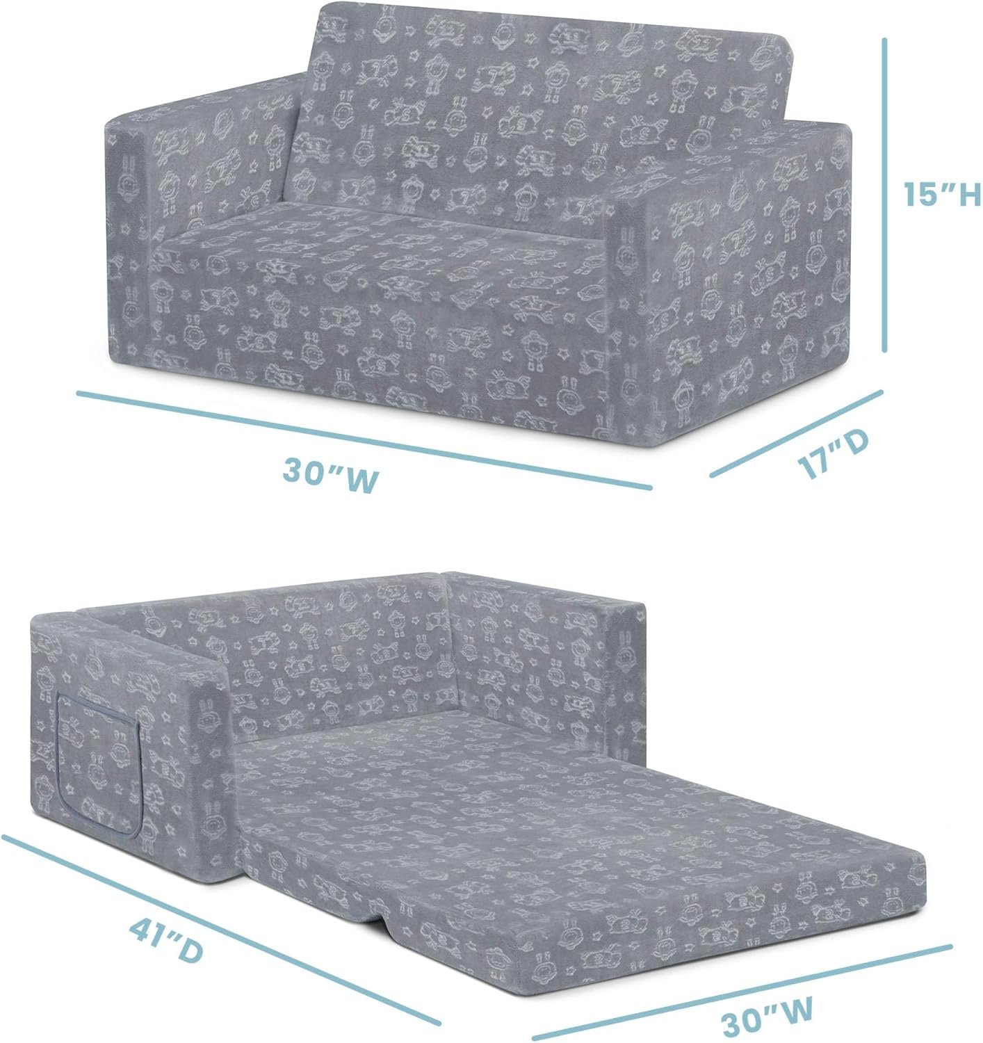 Give your little ones the ultimate versatile space with the Delta Children Serta Perfect Sleeper Kids 2-Seater Sofa. This innovative 2-in-1 foam couch effortlessly converts from a comfy sofa to a supportive toddler sleeper and lounger, featuring durable Serta foam and a machine-washable slipcover for easy care. Lightweight and designed for small spaces, it's the perfect playroom addition for ages 18 months and up.