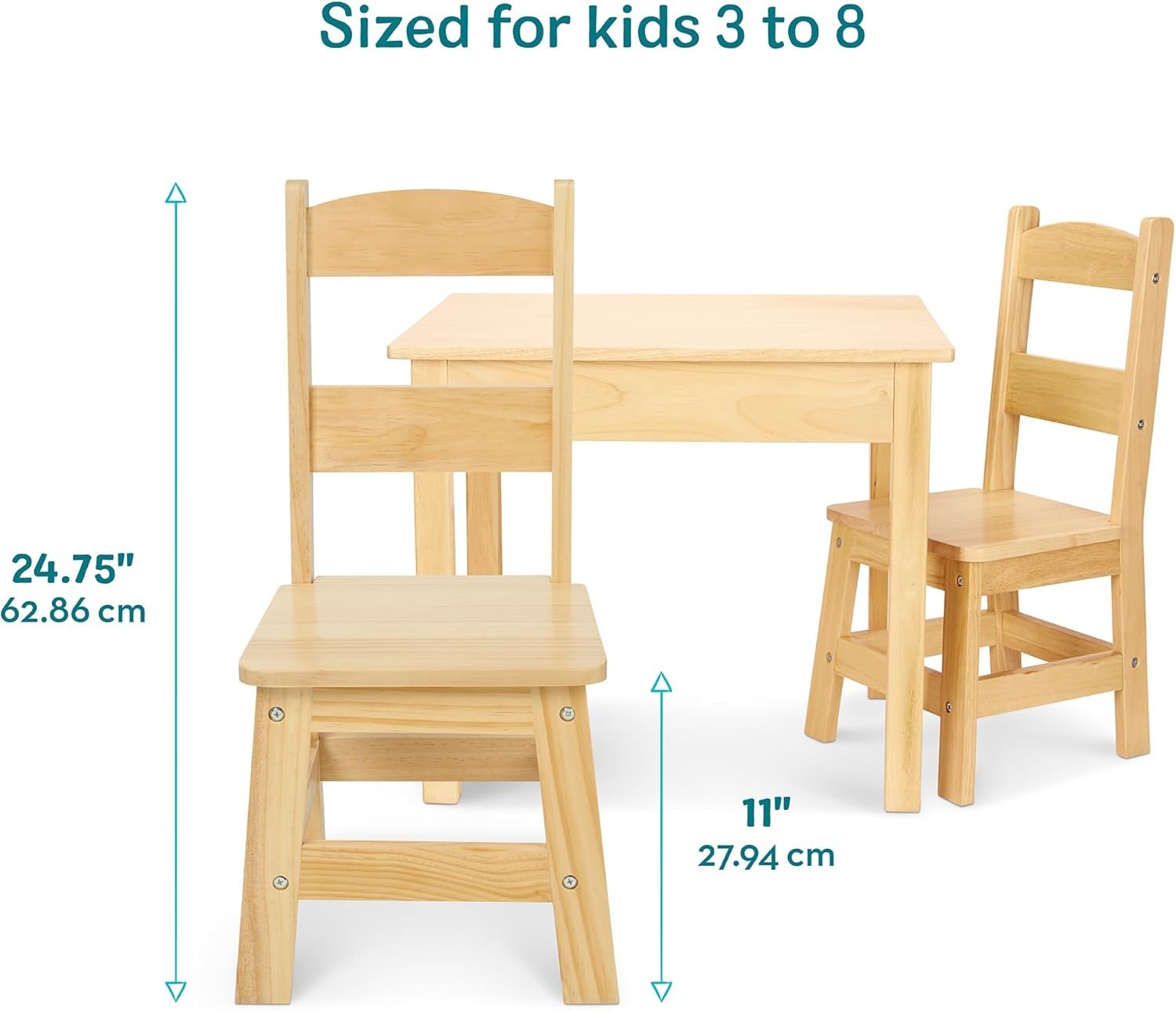 The Melissa & Doug Solid Wood Kids Table and Chairs Set is a premium, durable 3-piece wooden furniture solution designed for children aged 3+. Providing a dedicated and sturdy space for arts, snacks, and imaginative play, this easy-to-clean set supports up to 100 lbs per chair, ensuring lasting quality for any playroom or learning environment.