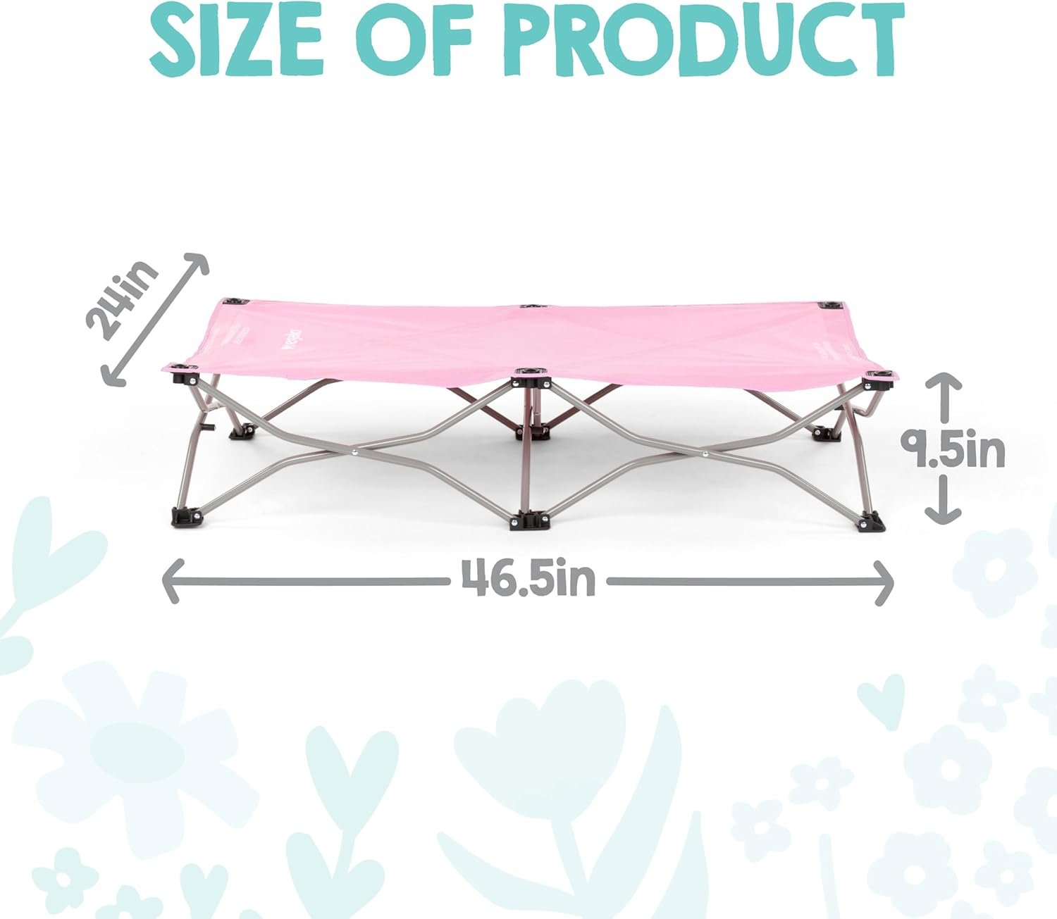 The Regalo My Cot® Portable Toddler Bed in Pink is an essential travel companion, offering instant comfort and convenience for your little one. Featuring a durable all-steel frame supporting up to 75 lbs and a generous 48"L sleep surface, it sets up instantly and folds compactly for effortless transport. Perfect for naptime, sleepovers, or vacations, this portable cot ensures a familiar, cozy spot wherever you go.
