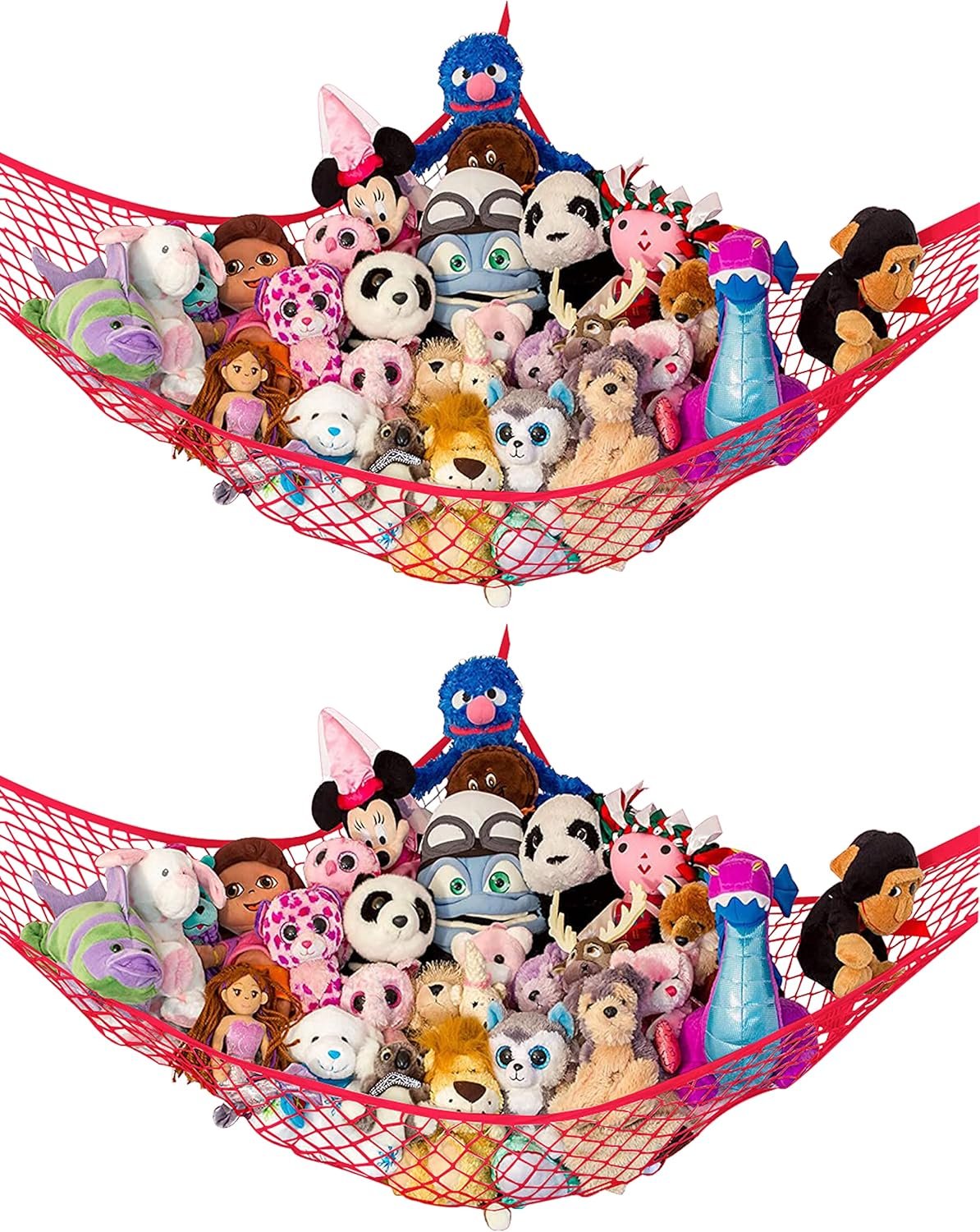 In my experience, a lot! I was able to comfortably fit around 35 small-to-medium plushies. For larger stuffed animals (think Squishmallow size), you could probably fit about 10-12. The key is the stretchy but strong netting on this stuffed animal hammock.