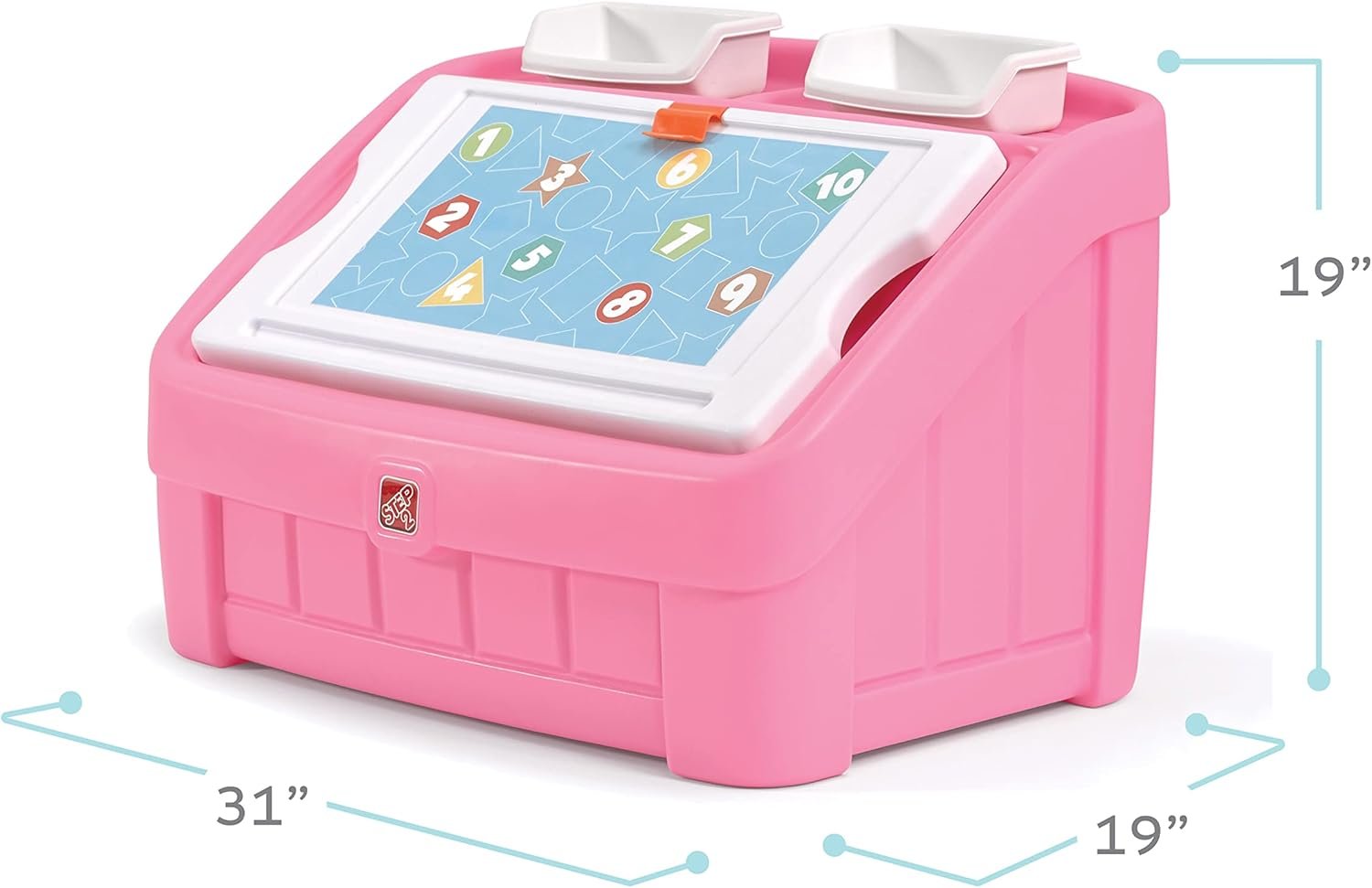 What really sets this toddler toybox apart is its dual-functionality. It’s not just a place to dump toys; it’s a creative hub. The feature I was most impressed by was the removable art lid. In my testing, this lid transformed the chest into a fantastic easel for drawing. It has a sturdy clip that holds paper perfectly, and my daughter has spent hours drawing her masterpieces on it. The lid itself is an art board, so she can draw directly on it with dry-erase markers. According to the official Step2 website, it’s designed to encourage creativity, and I can confirm it absolutely does. This isn’t just a pink toy chest; it’s an invitation for your child to create. The two small bins on top serve as a perfect art supply organizer, keeping crayons and brushes from getting lost in the main compartment. This thoughtful design makes it a superior toy organizer bin compared to simpler models.