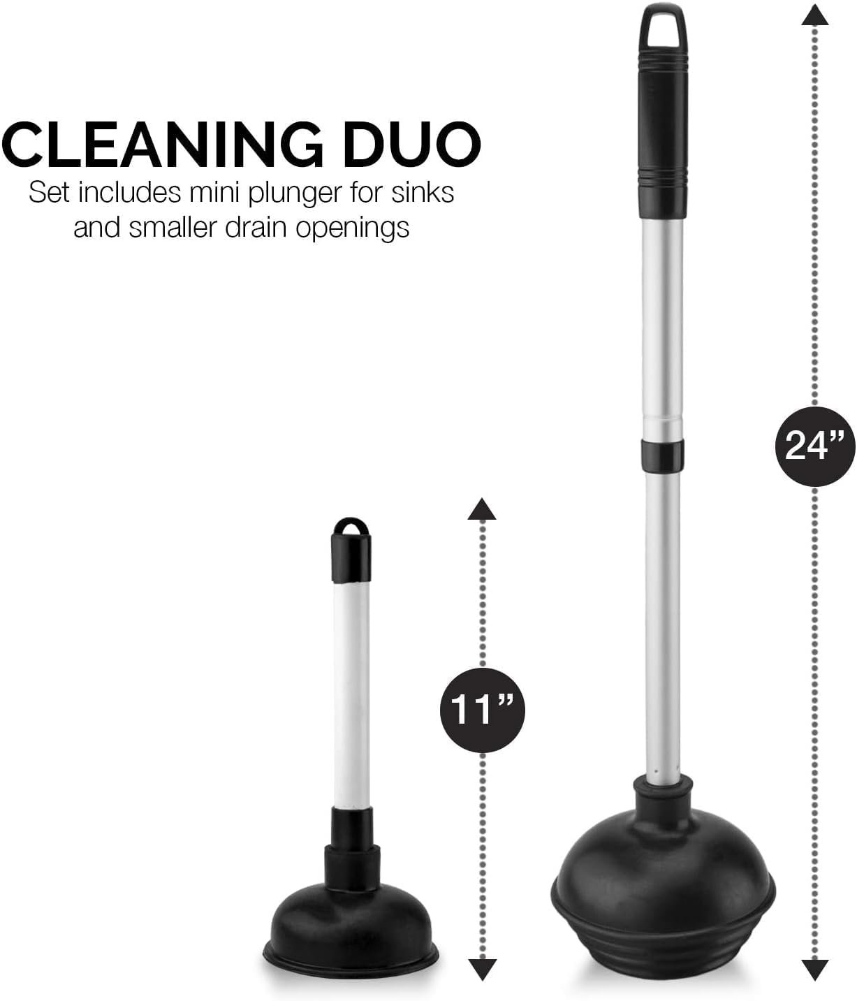 • Bonus Mini Sink Plunger: Perfect for slow bathroom sinks, shower drains, or tubs—simply grab the bonus mini sink plunger for secondary clogs, making it a sink drain cleaner that punches above its size.