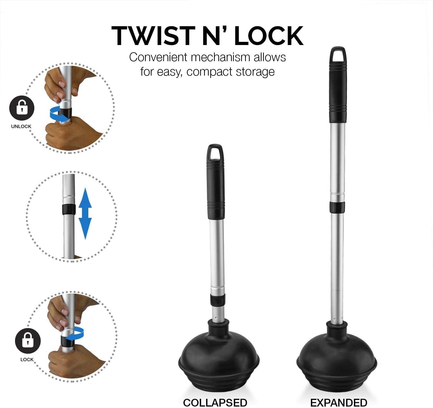 • Urban Apartments/Small Bathrooms: The easy to store plunger and telescopic handle makes it ideal for tight spaces—no more wrestling with oversized sticks.